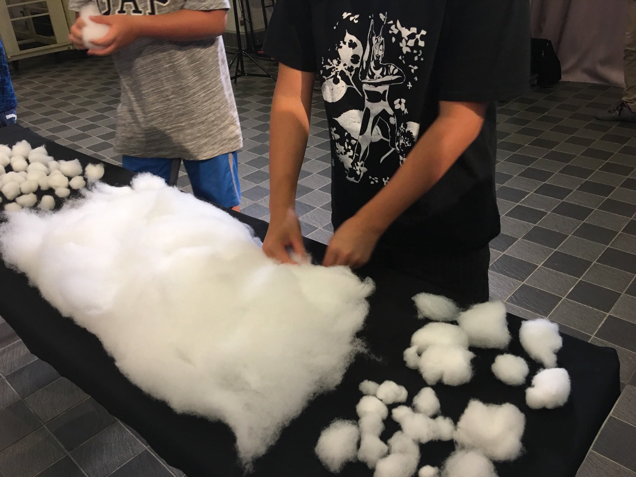 特撮ワークショップが始まりました。 今日は約50名の皆さんと綿で雲を作っていきますよ。#特撮ワークショップ #特撮推進事業実行委員会